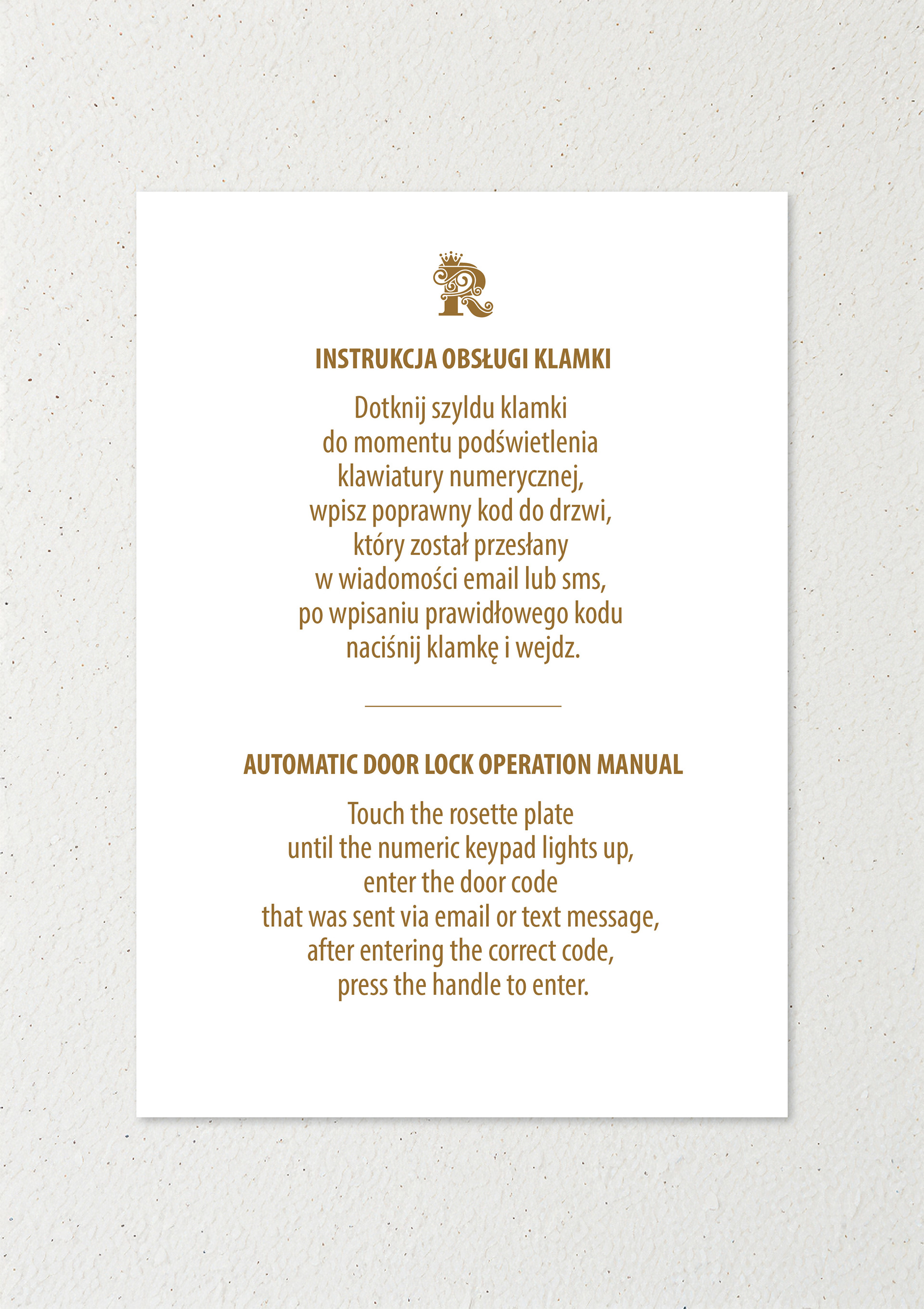 Identyfikacja wizualna obiektu. Projekt zakładał stworzenie logotypu i opracowanie identyfikacji dla wszystkich projektów promocyjnych i informacyjnych, w takim stylu, by nawiązywał do charakteru obiektu. Biżuteryjne [R] oraz motyw graficzny kamienicy w postaci architektonicznego, technicznego rysunku przewija się przez większość kart, tworząc spójną całość. Dopracowany, estetyczny, stanowi wartość dodaną dla całego wizerunku przedstawionych materiałów.
