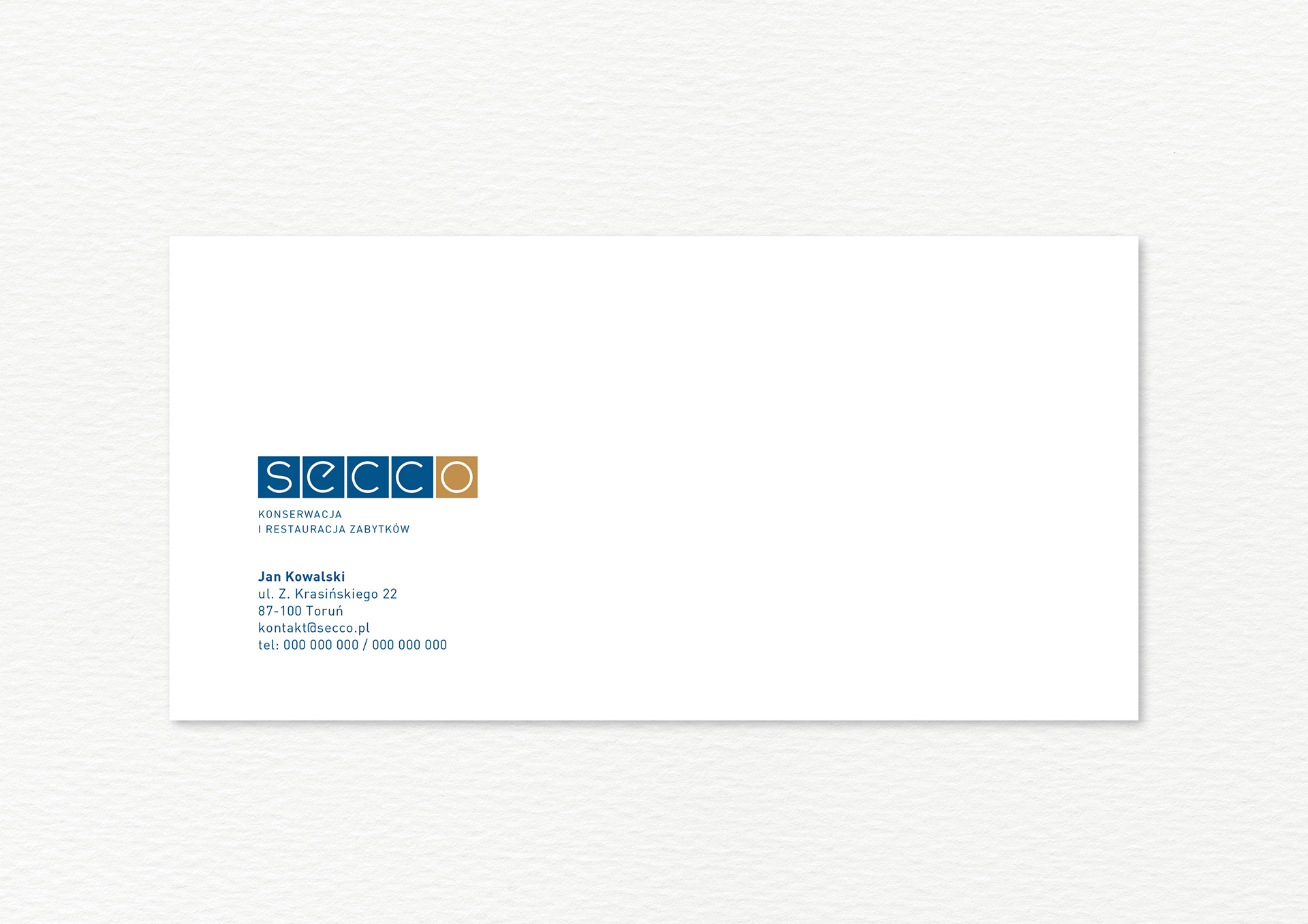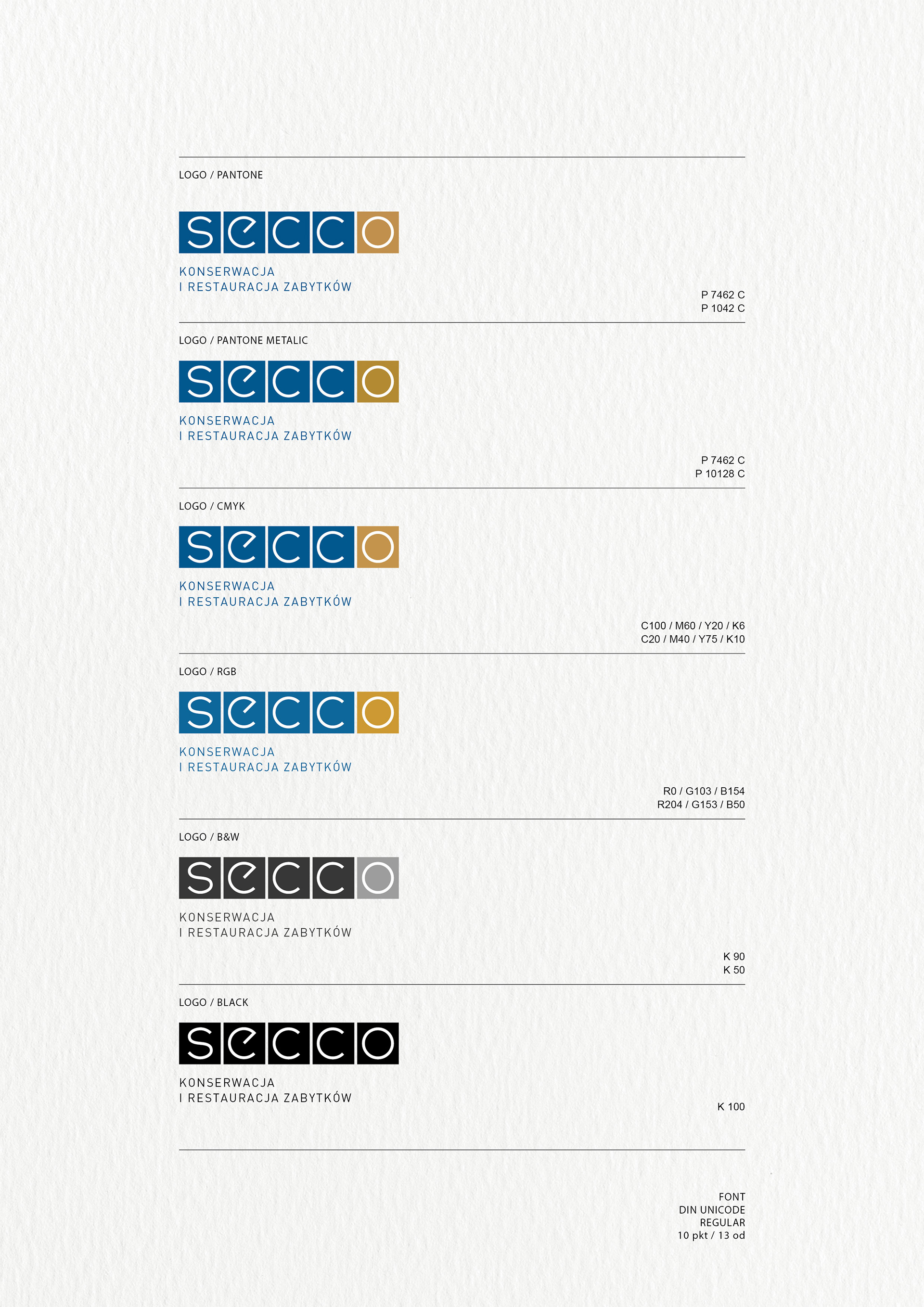 Projekt identyfikacji wizualnej firmy zajmującej się konserwacją i restauracją zabytków Secco.
